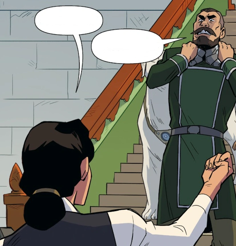 - Obwohl laut The Legend of Korra: The Art of the Animated Series—Book Four: Balance Guans Ärmelstreifen sowie sein 3-streifiger Chevron ihn als Sergeant, wie dies auch in Wirklichkeit der Fall ist, auszeichnen, wird er in Die Ruinen des Imperiums kontinuierlich mit dem Rang „Kommandant” angesprochen.[32] Es ist möglich, dass die Anmerkung bezüglich der Ärmelstreifen nicht ausschließlich für die Stellung des Sergeants gilt und stattdessen auch für sukzessive Ränge gilt.