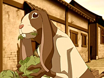 Este animal fue visto por primera vez en el Zoológico de Ba Sing Se, cuando el Avatar Aang intentaba salvar este lugar de la ruina total junto con su cuidador Kenji, este último le dijo al joven Avatar que prefería que este animal estuviera saltando libre en una pradera, a que estuviese encerrado y cabizbajo. Cuando Aang decidió recrear el zoológico en la zona agraria, este animal fue visto atacando a el comerciante de las coles y comiendo su producto de venta. Luego el joven logro atraer al conejo con su silbato de bisonte, así como a otros animales. Mas tarde se vio que el ejemplar del zoológico era un hembra, que había dado a luz a tres bebes en su nuevo hogar.