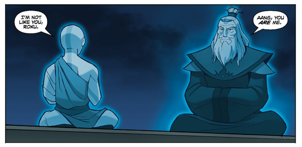 Aang gli chiese aiuto anche il giorno prima dell’arrivo della Cometa di Sozin, che non era sicuro se poteva togliere la vita a Ozai, dato che i suoi insegnamenti da monaco di rispettare ogni forma di vita glielo impedivano. Mentre Roku capì il conflitto interno del ragazzo, insistette che doveva ucciderlo per salvare il mondo. Spiegò inoltre che era stata la sua indecisione di terminare la vita di Sozin quando poteva che ha dato origine a questa guerra, Aang non poteva fare lo stesso errore mostrando pietà non dovuta.
