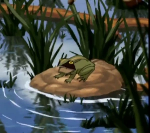 De Zebrariet Kikker leeft tussen het zebrariet in poeltjes langs de rivieren. Er ontsnapt er één nog maar net aan Momo in hoofdstuk "Bitterhard Werken".