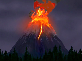 Po przekonaniu cioci Wu do drugiego odczytania chmur, potwierdziła ona zbliżającą się erupcję wulkanu, zachęcając mieszkańców wioski do zjednoczenia się w celu wykopania fosy wokół wioski łopatami i magią ziemi, aby zmienić kierunek przewidywanego przepływu lawy. Chociaż lawa wpłynęła do kanału zgodnie z planem, gdy wulkan wybuchł wkrótce potem, lawa szybko zaczęła się przelewać. Aang był zmuszony użyć magii powietrza, aby schłodzić i zestalić stopioną skałę, gdy rozpryskiwała się na brzegu. Magia powietrza Aanga uratowała wioskę, pozostawiając po sobie dużą falę skalną jako trwałe przypomnienie niebezpiecznego potencjału wulkanu. Niemniej jednak mieszkańcy wioski nie zachwiali się w swojej wierze w ciocię Wu i twierdzili, że jej przepowiednia okazała się prawdziwa, ponieważ wioska nie została zniszczona, ku irytacji i frustracji Sokki. Drużyna Awatara wkrótce potem odeszła[6].