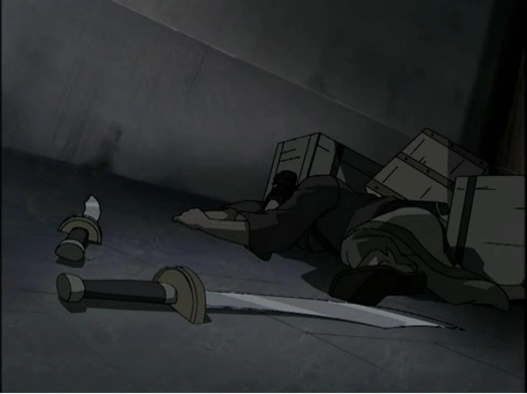 Айро и Зуко сделали очередной привал в деревне у реки. Запасы провизии и деньги у них кончились, так что Айро начал собирать милостыню. Мимо как раз проходил этот мужчина. Он потребовал развлечь его, а взамен пообещал заплатить медной монетой. Зуко сказал, что они не артисты. Однако Айро на это возразил, что они неплохо поют. Дядя исполнил песню "Девушки из Ба Синг Се", но мужчине этого было мало. Он заявил, что не за это платит, и, достав свои палаши, заставил Айро танцевать, ударяя мечами рядом с его ногами. Зуко очень разозлился: он скрежетал зубами и еле сдерживался. Потом мужчина засмеялся и, риторически спросив, что может быть лучше толстяка, танцующего за жалкую монетку, кинул монету на землю. Он убрал палаши в ножны и отправился дальше. Айро подобрал монету и заметил, что он такой щедрый, а Зуко промолчал. Принц явно что-то замыслил и уже обдумывал план.