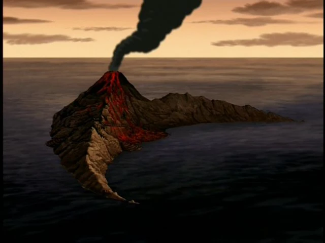 Во второй раз Аанг оказался на острове, когда покинул своих друзей и попытался в одиночку достичь страны Огня, чтобы вернуть себе честь после событий в кристальных катакомбах. Он попал в шторм и, несмотря на все свои усилия, потерял сознание и был выброшен на каменистый берег. Здесь и нашли его Катара, Сокка и Тоф, прилетевшие на Аппе. Аанг понял, что без друзей ему не добиться успеха в таком трудном деле, и воспользовался текущей горячей лавой, чтобы сжечь свой посох. Теперь никто бы не смог узнать, что Аватар жив. («Пробуждение»)