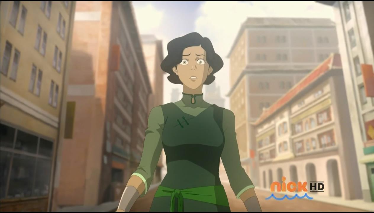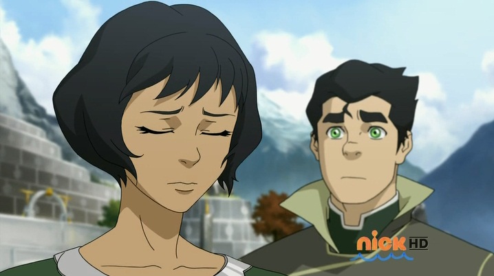 - Корра и Болин непонятным образом перемещаются с того места, откуда они сначала смотрели за дуэлью Лин и Су, к беседке, где находятся остальные члены семьи Су.