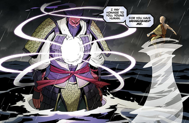 Despite his attempts at a peaceful solution, Aang was forced to wound General Old Iron to save his friends, causing the spirit to leave the physical world.