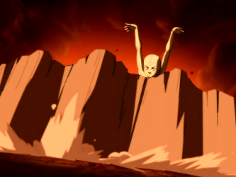 During the invasion, Aang became extremely upset upon not being able to find Fire Lord Ozai, believing that he had lost his only chance to defeat him and end the war.[97] Aang expressed his determination to face Ozai anyway, even though at this time the eclipse had passed, and Ozai was now capable of firebending once more. He was dissuaded, however, by Toph and Sokka, who advised him to retreat and attack at a more advantageous time.[52]