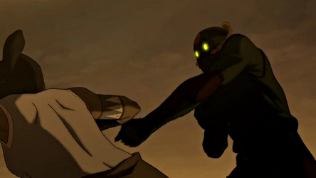 Amon brought a unit of chi-blockers with him to a midnight duel with Korra on Aang Memorial Island. As the Avatar was walking away from the island, believing Amon was a no-show, she was ambushed by the nonbenders and chi-blocked, rendering her helpless when Amon faced her.[24]