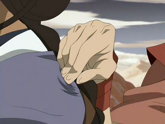 During their second encounter, Mai and Ty Lee chased down Katara and Sokka on the shores of the Nan Shan River. Despite being aware of Ty Lee's skill, she still managed to chi-block Sokka, rendering most of his limbs useless. However, she hurt her hand when she attempted to chi-block his head.[15]