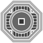 Appropriating the symbol of the Metal Clan,[21] the Earth Empire's military emblem is a stylized gray octagon with the Earth Kingdom national emblem, a square inscribed within a circle, in the middle. Around the circle are straps which form a thick cross.