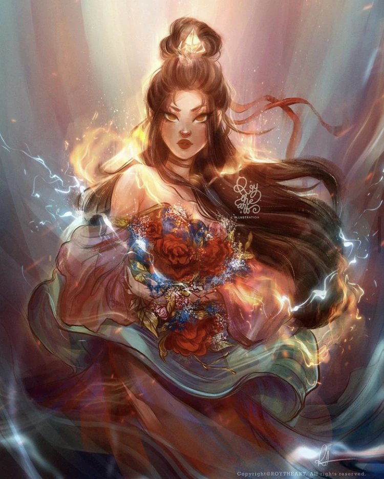 Huazo is a very skilled fire bender who knows a lot of stances and moves. She has become very advanced in fire bending that she has obtained the use of green flames.