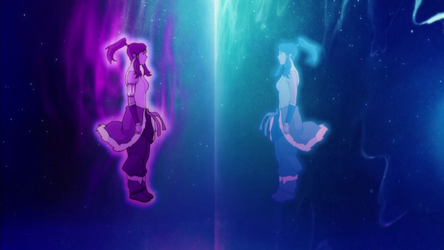 As the Avatar, Korra also has the capacity to act as a bridge between the mortal world and the Spirit World, the plane of existence where the universe's disembodied spirits dwell. Despite this, Korra had always struggled with the spiritual aspects of being the Avatar, initially being unable to connect with her past lives or enter the Spirit World on her own.[11] As her training under Tenzin progressed, she had slowly begun to connect with her spiritual side, seeing visions of her past life as Aang. Later, after her encounter with Amon, all of her active bending abilities were taken away, but this allowed her to finally break free from her airbending block and defeat Amon. Upon sinking into despair after Katara was unable to restore her lost bending, Korra was finally able to connect with her past lives, which restored all her bending abilities, as well as passing on to her the ability to energybend. With her newfound spirituality, she can enter and leave the Avatar State at will.