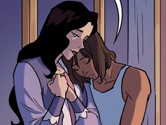 Three weeks later, while staying at the Southern Water Tribe Royal Palace, Korra had a nightmare about Zaheer asphyxiating her. She woke up, severely distressed and breathing heavily. Korra went out on the balcony for some fresh air and to look at the spirit lights, where she was found by her mother. Senna approached her, worried about her well-being, and urged her to seek help from Katara. She agreed and received a hug from her mother, who expressed her love for Korra.