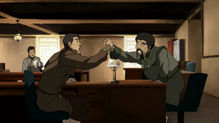 Lu and Gang were two former detectives of the Republic City police force, working under the orders of Chief Lin Beifong.[3] They were demoted from their positions after President Raiko and his wife were almost kidnapped by assailants hired by Varrick.[4]