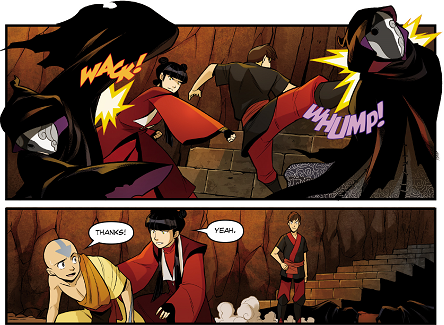 At the Garden of Tranquil Souls, Mai and Kei Lo saved Aang from Azula's followers.