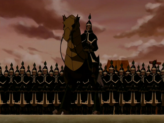 Earth Kingdom Army troops under Boqin fought alongside Team Avatar in the siege of Shen Guan.