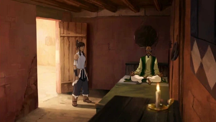 Korra and Mako observed Aiwei from their room, while Asami and Bolin played numerous games of Pai Sho, which the latter found in one of the room's chests. Korra eventually decided to confront Aiwei in his room and found the earthbender in the middle of meditation. The young Avatar decided to meditate as well in order to enter the Spirit World, after deducing that Aiwei would be meeting with Zaheer outside of the mortal realm.
