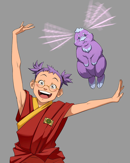 Nyanchi was born and raised at the Eastern Air Temple and chafed under her teachings due to her stubborn free spirit. When an earthbender named Boin arrived at the air temple on pilgrimage to discuss helping the Earth Sages, Nyanchi saw a kindred spirit and an opportunity to leave and see the world under Boin's tutelage while having a good time doing it.[1] Nyanchi captured Boin's imagination, and he promised the Air Nomads he would watch over her while they traveled together, acting as her guardian.[2]