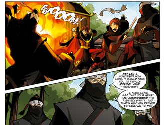 | "You and I have longed for the glory days of Ozai's rule, when the Fire Nation was the strongest and safest of all the nations! No outside threat stood a chance against us! Little did we know that we would be undone from within by Zuko, our own crown prince! Believers like us had to go underground. We worked long and hard, preparing for the day when we could finally remove that impostor!" |