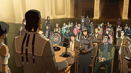 In general, Republic City politics are localized. People do not have a commitment to a political party or larger institution. The citizens of Republic City are proud to vote, especially seeing as they have only had the full right to do so in the past few years. Many citizens are aware of how the laws and policies of the city ultimately impact their lives, and they keep an eye on politics so they can help enact change when needed. A growing political class, however, has demonstrated some interest in the power and games of politics disconnected from the wider interest of the citizenry.[33]