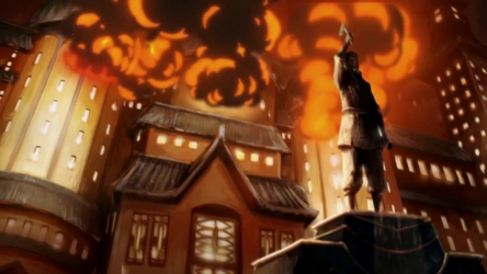 On the night of Harmonic Convergence, Republic City indeed came under attack by the Dark Avatar, a fusion of Unalaq and Vaatu. While the United Forces fought against Unalaq in vain, he caused severe damage to the capital. His rampage was eventually halted by Avatar Korra, who purified and destroyed the Dark Avatar.[17]